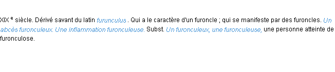 Définition du mot « furonculeux » par Emile Littré (édition de 1876).