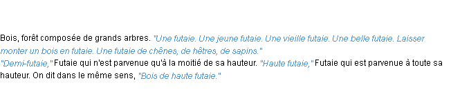 Signification du terme « futaie », parution de 1932, dictionnaire académique Français.