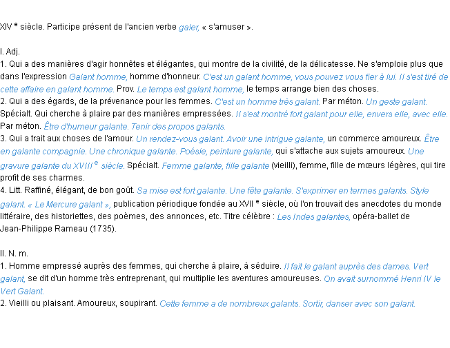 Définition du mot « galant » par l’Académie Française (édition de 1986).