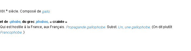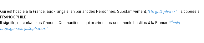 Signification du terme « gallophobe », parution de 1986, dictionnaire académique Français.