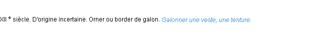 Ancienne définition « galonner » du dictionnaire académique Français, parution de l’année 1798.Merci à Philippine et Doriane pour la numérisation du mot galonner.