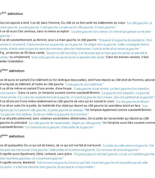 Ancienne signification éditée en 1835 pour le terme « gauche » par l’Académie Française.