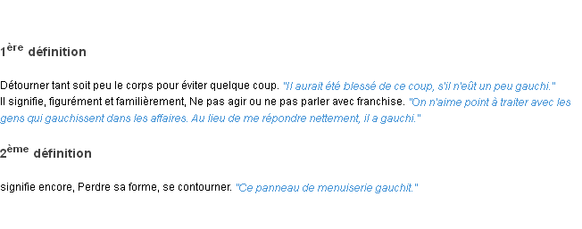 Définition académique pour le terme « gauchir » (parue en 1986).
