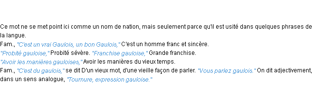 Signification éditée en 1932 pour le terme « gaulois » par l’Académie Française.