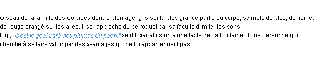 Ancienne définition de « geai » de source académique (Académie Française, parution de 1798).