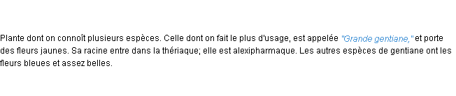Ancienne définition de « gentiane » de source académique (Académie Française, parution de 1798).