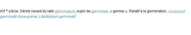 Signification éditée en 2008 pour le terme « germinatif » par l’équipe de wiktionary France.