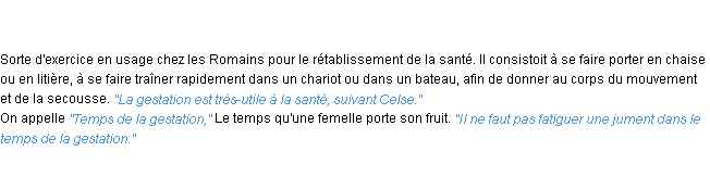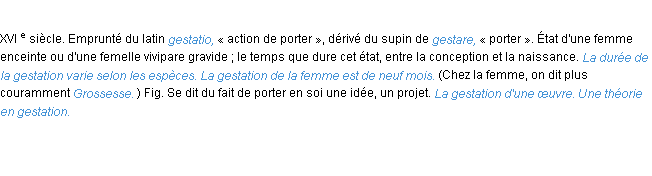 Ancienne définition développée dans dictionnaire académique, 1798.Merci à Honoré et Andrée pour la numérisation du mot gestation.