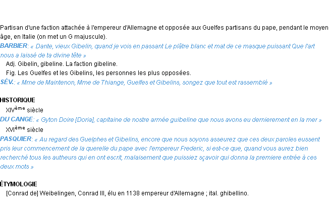 Définition du mot « gibelin » par l’Académie Française (édition de 1986).