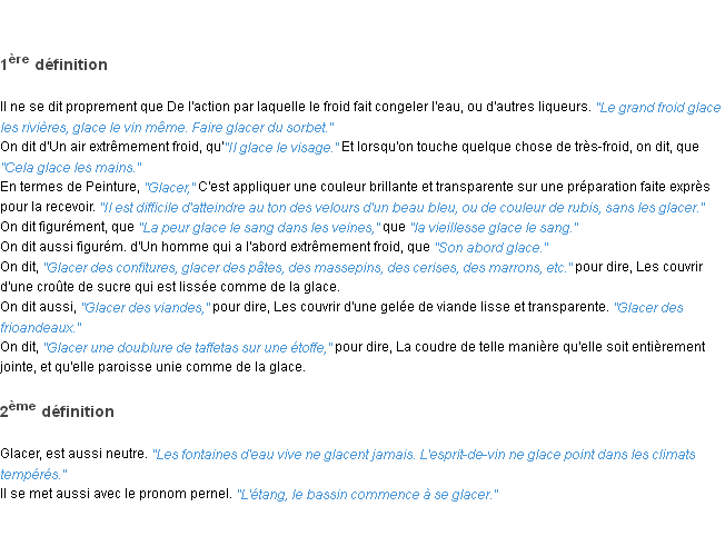 Signification du terme « glacer », parution de 1986, dictionnaire académique Français.