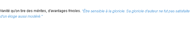 Signification du terme « gloriole », parution de 1986, dictionnaire académique Français.