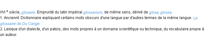 Ancienne définition académique pour le terme « glossaire » (parue en 1798).