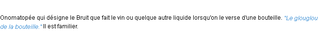 Définition de « glouglou » de source académique (Académie Française, parution de 1986).