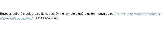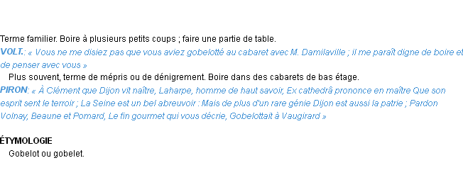 Ancienne signification du terme « gobelotter », parution de 1835, dictionnaire académique Français.