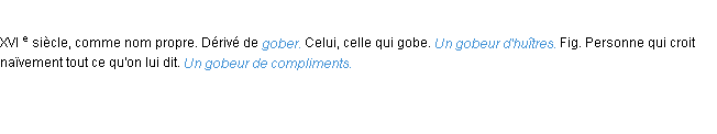 Définition académique pour le terme « gobeur » (parue en 1932).