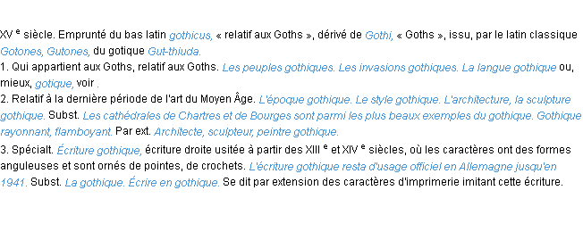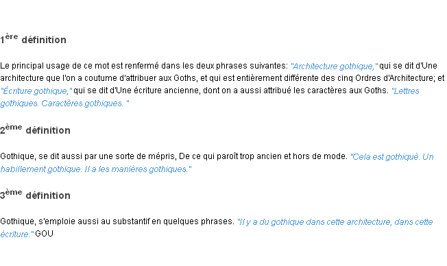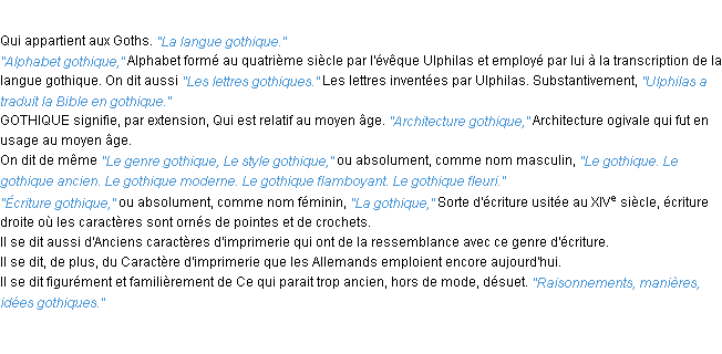 Ancienne définition « gothique » du dictionnaire académique Français, parution de l’année 1835.