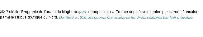 Définition « goum » du dictionnaire académique Français, parution de l’année 1932.