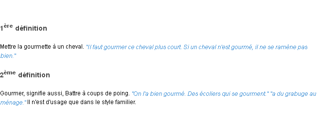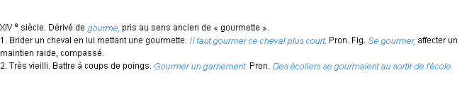 Ancienne signification éditée en 1835 pour le terme « gourmer » par l’Académie Française.