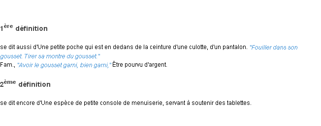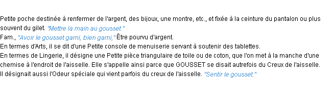 Définition du mot « gousset » par l’Académie Française (édition de 1986).