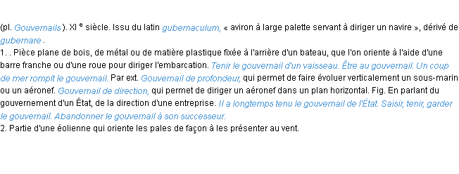 Définition de l’Académie Française (édition de 1932) pour le mot « gouvernail ».