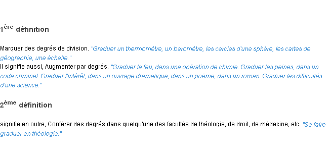 Ancienne définition « graduer » du dictionnaire académique Français, parution de l’année 1798.Merci à Laurent et Germaine pour la numérisation du mot graduer.