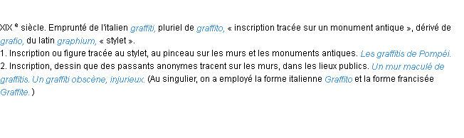 Définition du mot « graffiti » (source wiktionary 2011).