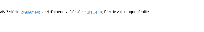 Signification éditée en 1876 pour le terme « graillement » par Emile Littré.Merci à Benjamine et Barnabé pour la numérisation du mot graillement.