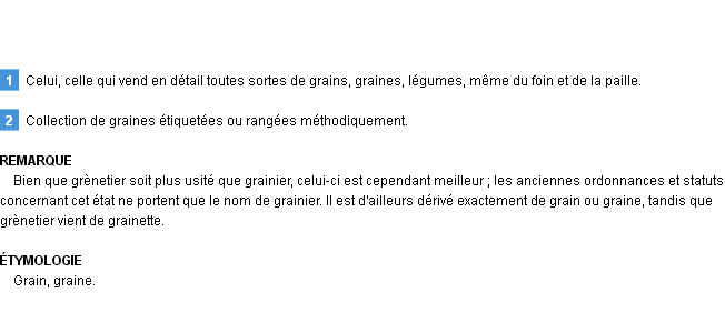 Signification éditée en 1876 pour le terme « grainier » par Emile Littré.- Autres Recherches