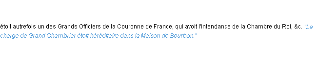 Ancienne signification développée en 17962 par l’académie Française (ACAD - 17962).Merci à Jérôme et Florianne pour la numérisation du mot grand chambrier.