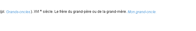 Définition développée dans dictionnaire d’Emile Littré (ancienne édition de 1876).Merci à Philippe et Colombe pour la numérisation du mot grand-oncle.