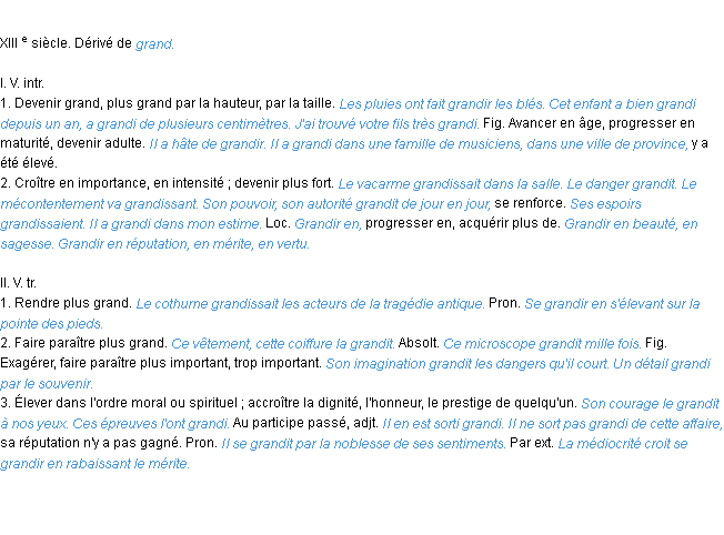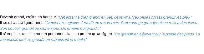 Ancienne définition académique pour le terme « grandir » (parue en 1835).