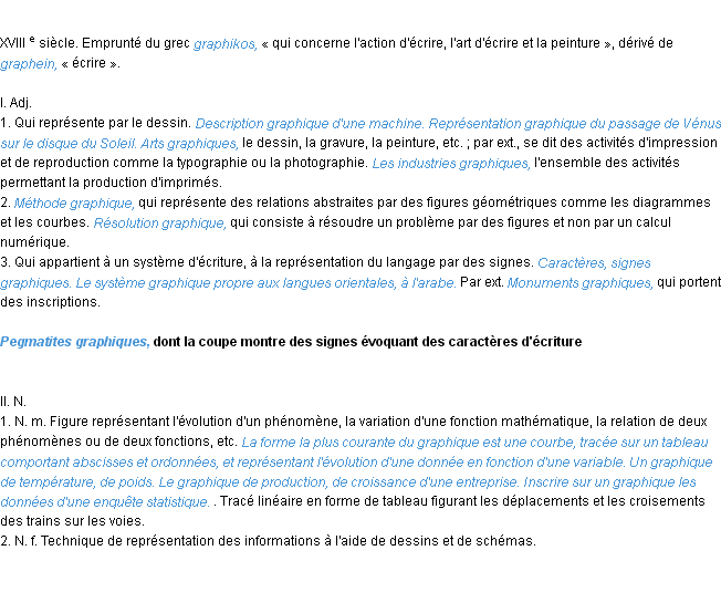 Ancienne définition du mot « graphique » par l’Académie Française (édition de 1798).Merci à Cerise et Léonard pour la numérisation du mot graphique.