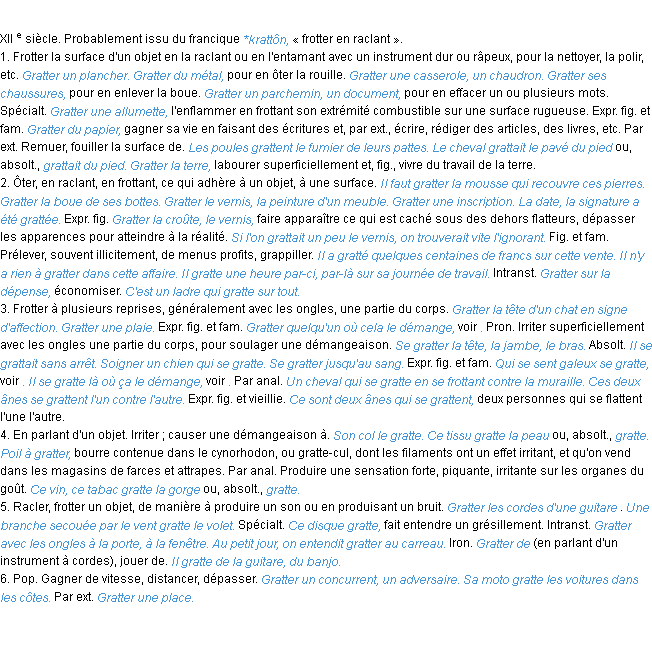 Définition du mot « gratter » par l’Académie Française (édition de 1932).