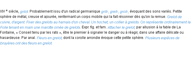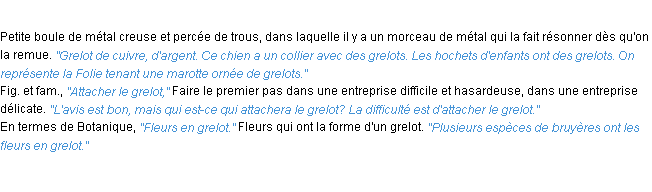Définition « grelot » du dictionnaire académique Français, parution de l’année 1986.