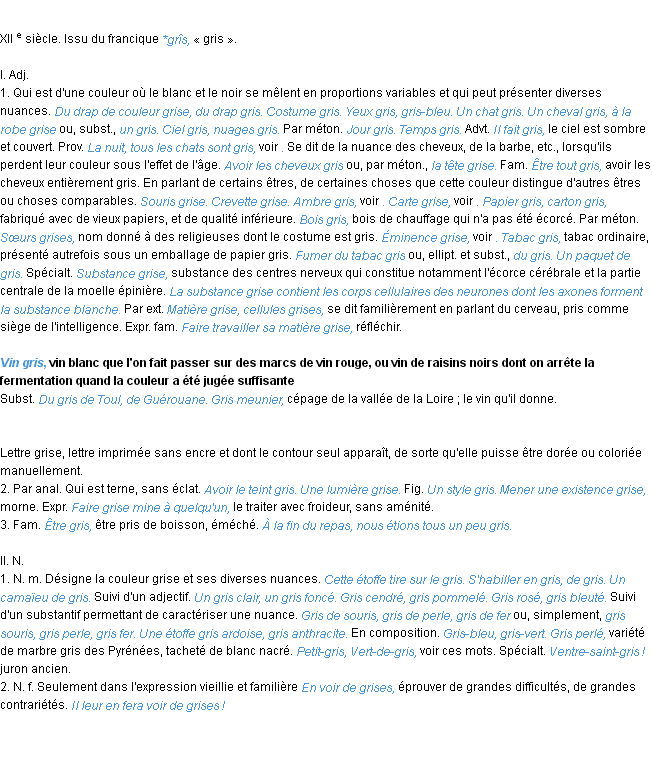 Définition de « gris » de source académique (Académie Française, parution de 1932).