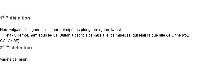 Définition académique pour le terme « guillemot » (parue en 1986).