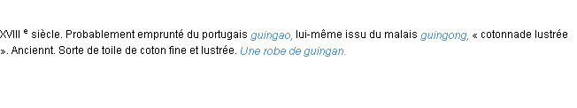 Signification du terme « guingan », parution de 1876 (dictionnaire le Littré).Merci à Delphine et Philibert pour la numérisation du mot guingan.