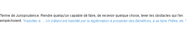 Signification éditée en 1932 pour le terme « habiliter » par l’Académie Française.