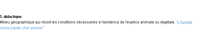 Définition d’Emile Littré (édition de 1876) pour le mot « habitat ».Merci à Julienne et Papillion pour la numérisation du mot habitat.