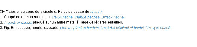 habler hâbler hâblerie hablerie hableur hâbleur hachage | hachard hache haché hache-écorce hache-légumes hache-paille hachement | hacher hachereau hachette hacheur hachis hachoir hachure |