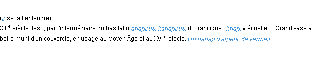 Définition « hanap » du dictionnaire académique Français, parution de l’année 1932.