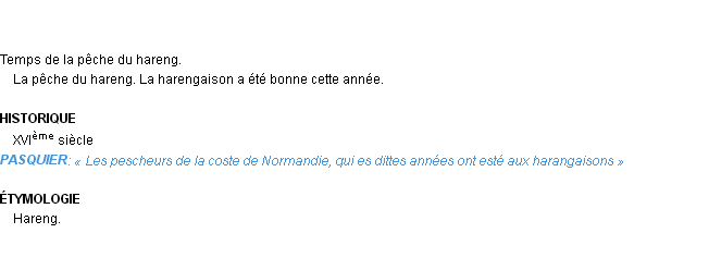 Signification éditée en 1932 pour le terme « harengaison » par l’Académie Française.