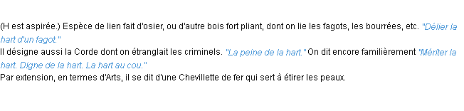 Signification éditée en 1986 pour le terme « hart » par l’Académie Française.