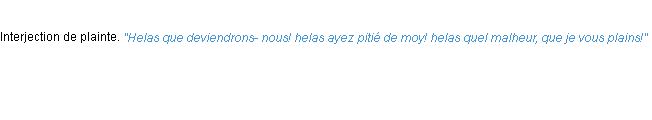 Ancienne définition de « helas » de source académique (Académie Française, parution de 1694).