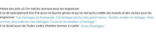 Définition de l’Académie Française (édition de 1986) pour le mot « herbage ».