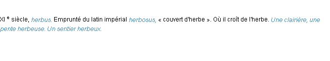 Définition de l’Académie Française (édition de 1986) pour le mot « herbeux ».