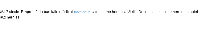Définition du mot « hernieux » par Emile Littré (édition de 1876).Merci à Aristide et Aurelien pour la numérisation du mot hernieux.