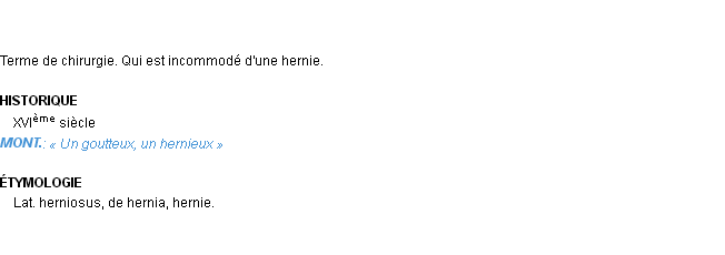 Définition de l’Académie Française (édition de 1986) pour le mot « hernieux ».