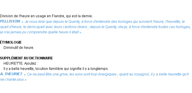 Signification développée en 1876 par Mr Littré (dictionnaire dit d’Emile Littré).Merci à Jérémie et Marielle pour la numérisation du mot heurette.