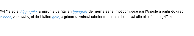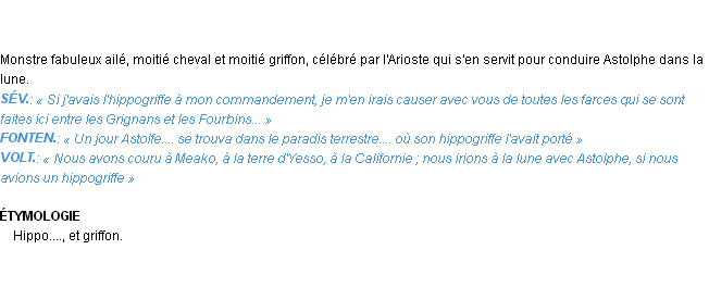 Signification éditée en 1986 pour le terme « hippogriffe » par l’Académie Française.